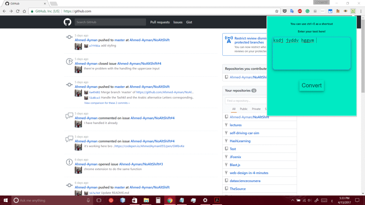 Google chrome extension that helps in converting the languages when you miss type in another language!