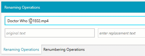 All the selected episodes have been renamed as long as there was text that matched the selected matching text in that file name.